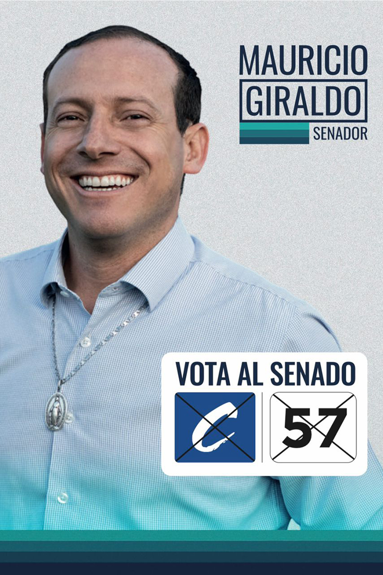 Nacido en Granada, el senador Mauricio Giraldo es esposo, padre de seis hijos y hombre de fe. Empresario y presidente en el Senado de la República, defiende Vida, Familia y Trabajo.